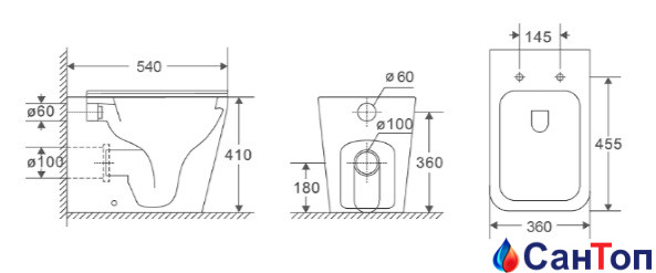 Универсальный слив. Основной конструктивной особенностью является место расположения слива, который отдален от задней стенки унитаза на максимально возможное расстояние. Универсальный или двойной слив позволяет осуществить горизонтальное или вертикальное подключение сантехнического устройства.